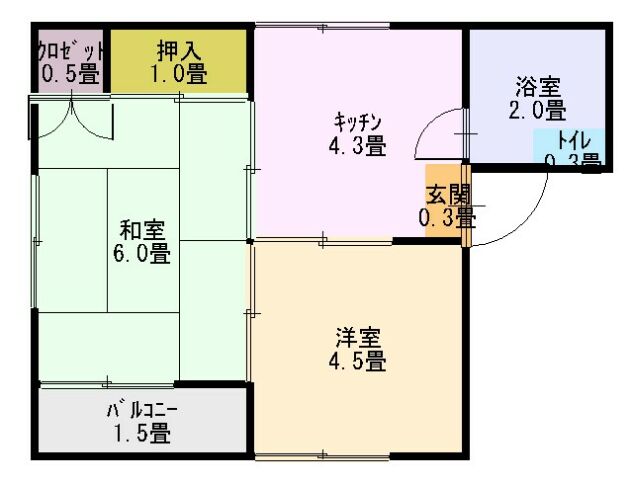 | 間取り | 2DK (和室:6畳、4.5畳) | ||