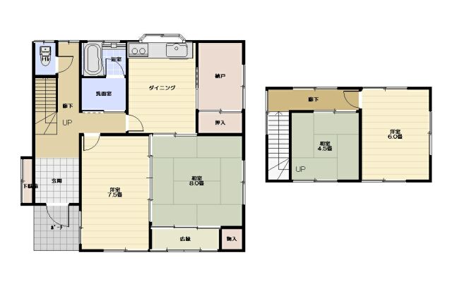 | 間取り | 5DK (和室:8畳、4.5畳) (洋室:6、4.5) DK6 |