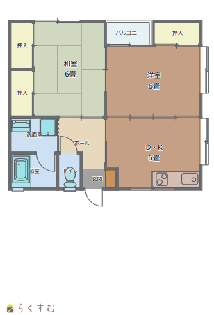 | 間取り | 2DK (和室:6畳) (洋室:6) DK |