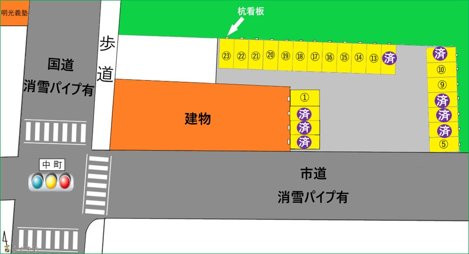 | 備考 | ¥3,000 1台/月(税込) 3月~12月 ¥2,000 1台/月(税込) 1月~12月 ※1月~2月の冬季期間のみ月額料金から¥1,000値引き致します。 最新の空き状況はお問い合わせください |