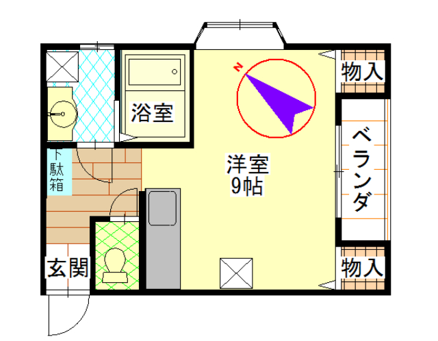 | 面積 | 28.91㎡ /8.74坪 | 方位 | 南東 |