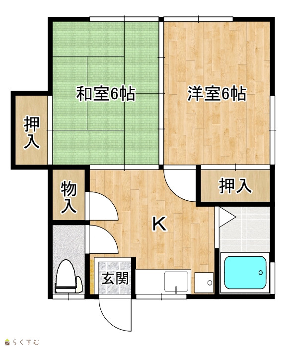| 間取り | 2K (和室:6畳) (洋室:6) | ||