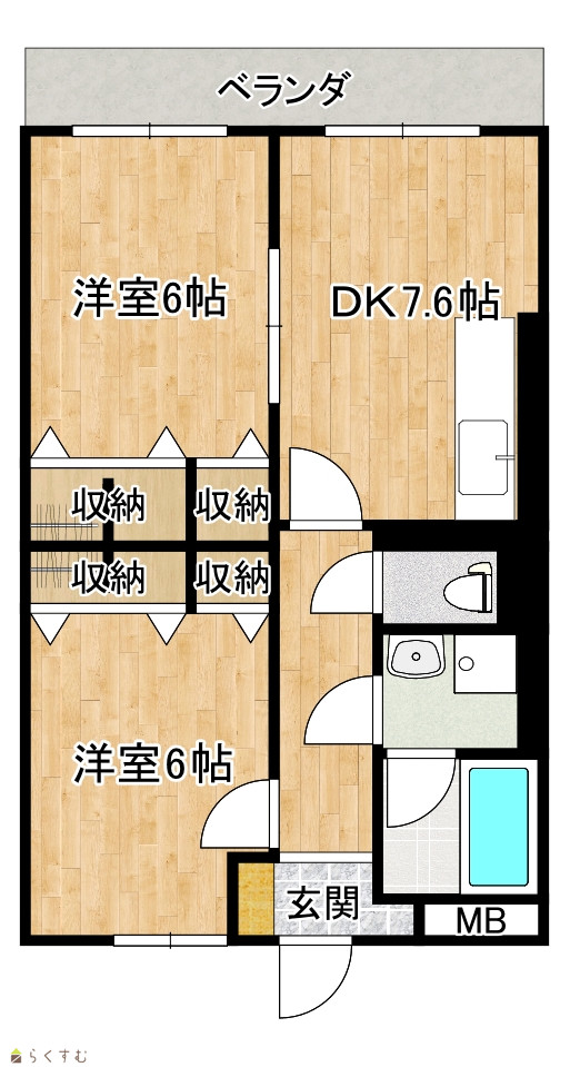 | 間取り | 2DK (洋室:6、6) DK7.6 |
