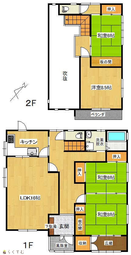 | 間取り | 4LDK (和室:8畳、6畳、6畳) (洋室:8.5) LDK16 |