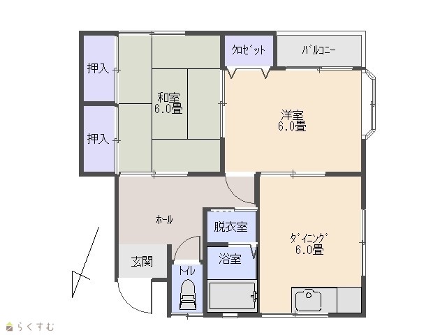 | 間取り | 2DK (和室:6畳) (洋室:6) DK6 |