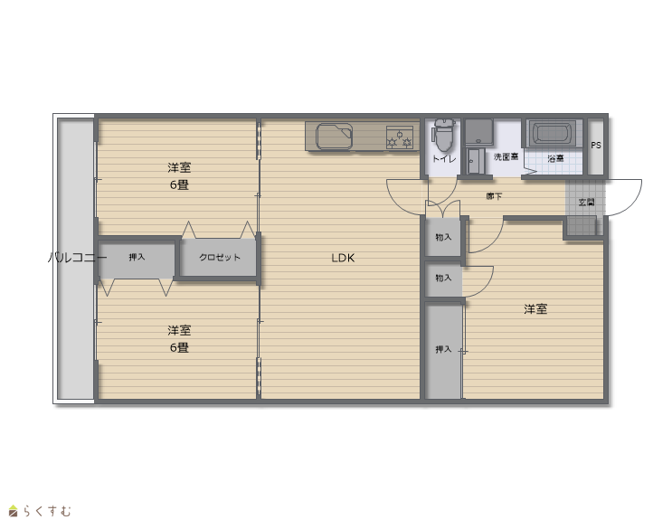 | 間取り | 3LDK (洋室:6、6、8) LDK12 |