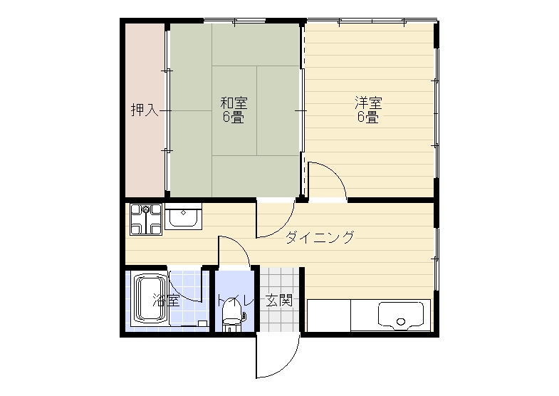 | 間取り | 2DK (和室:6畳) (洋室:6) DK |