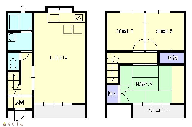 | 間取り | 3LDK (和室:7.5畳) (洋室:4.5、4.5) | ||