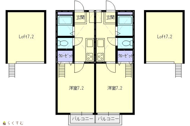 | 間取り | 1K (洋室:7.2) | ||