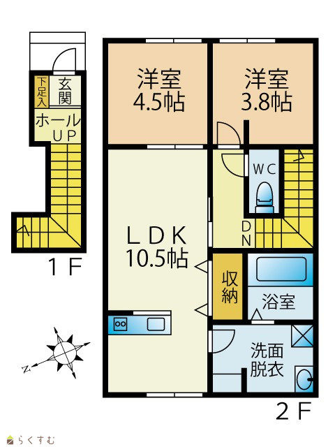 | 間取り | 2LDK (洋室:4.5、3.8) | ||