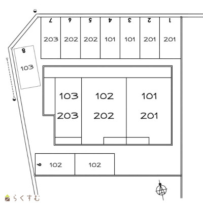 駐車場2台無料(102号室のみ縦列区画) |