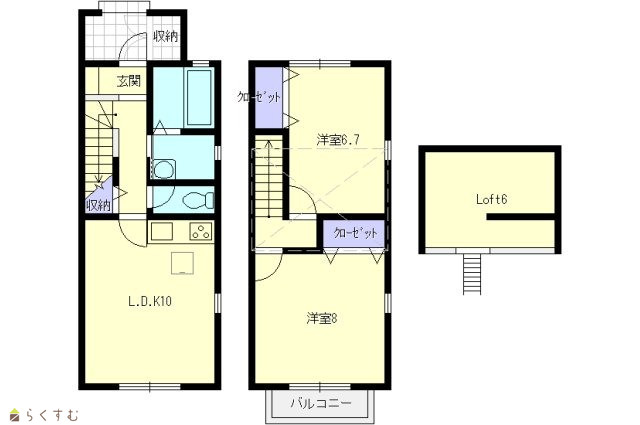 | 間取り | 2LDK (洋室:8.0、6.7) | ||