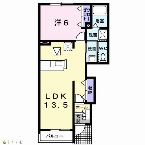 | 間取り | 1LDK (洋室:6) LDK13.5 |