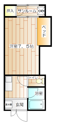 | 一人暮らしに嬉しい設備、オール電化、造り付けベッド&サンルーム。 | |||