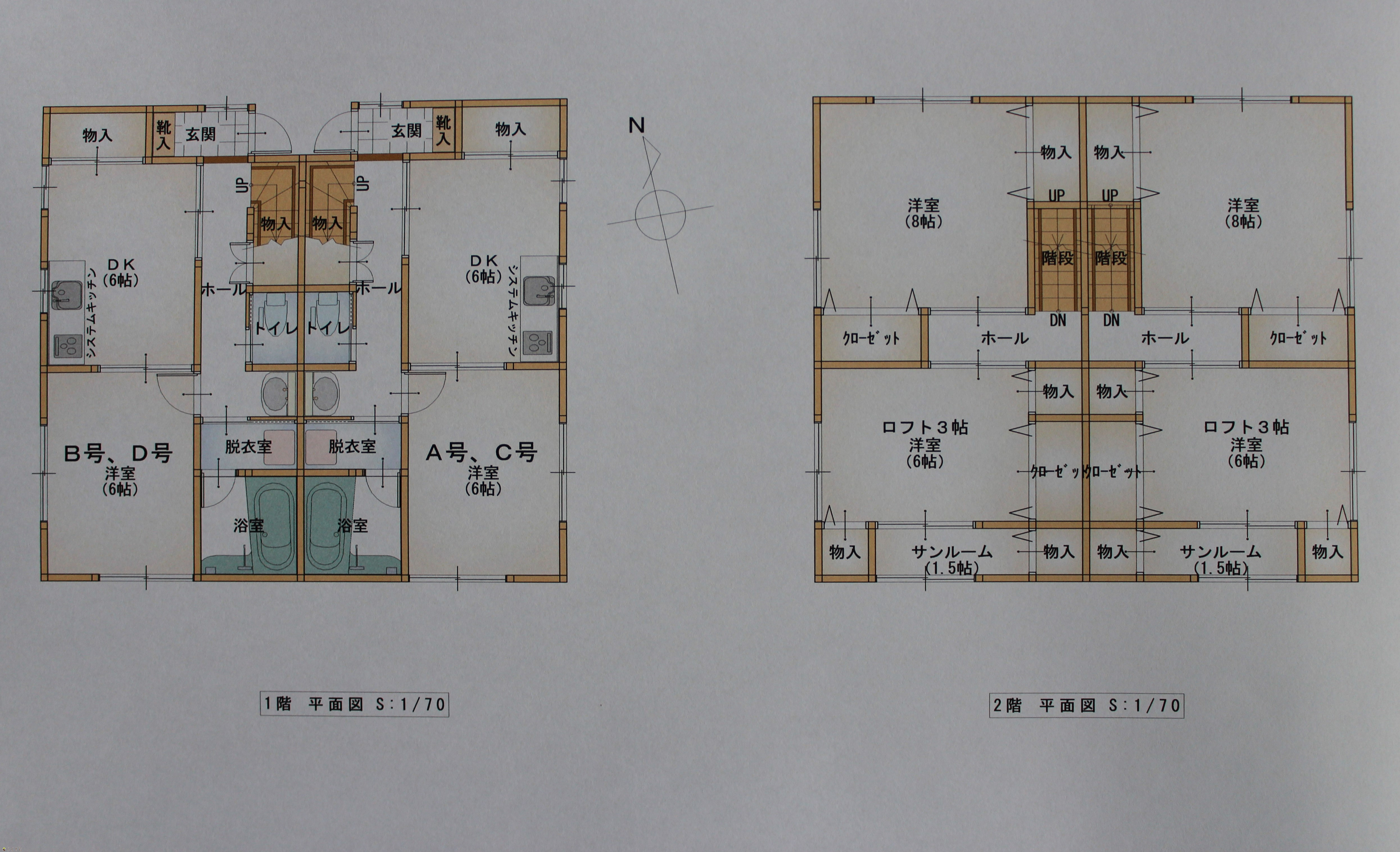 | 設備 | 閑静な住宅街、バリアフリー住宅、ロフト、メゾネット、駐輪場あり、駐車場2台無料、南向き、ダブルロックキー、システムキッチン、バストイレ別、追いだき機能付き、温水洗浄便座、シャワー付き洗面台、エアコン、都市ガス、サンルーム、全居室フローリング、玄関収納、BS端子・アンテナ、メゾネット式 | ||