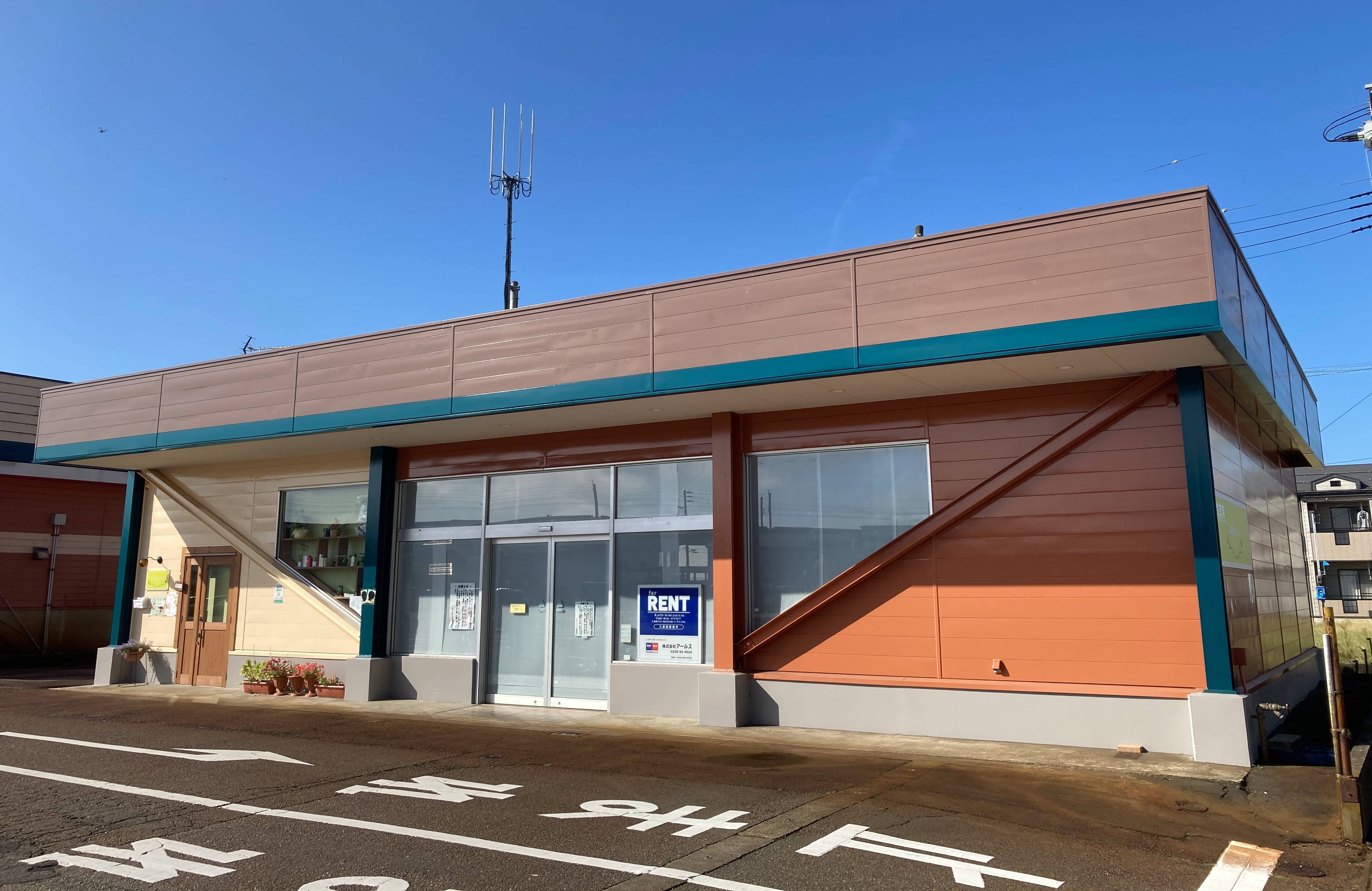 スーパー敷地内にある貸店舗、国道17号線長岡東バイパス近く。