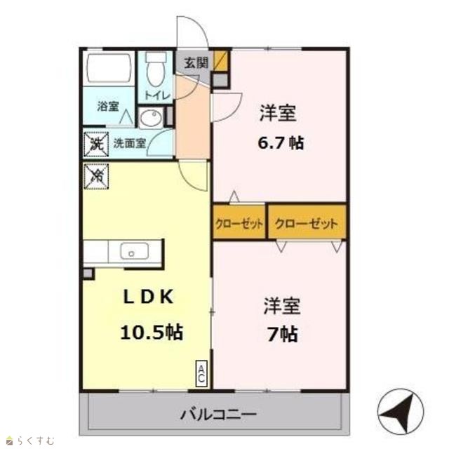 | 間取り | 2LDK (洋室:7、6.7) | ||