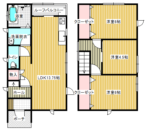 | 間取り | 3LDK (洋室:6.0、6.0、4.5) LDK13.7 |