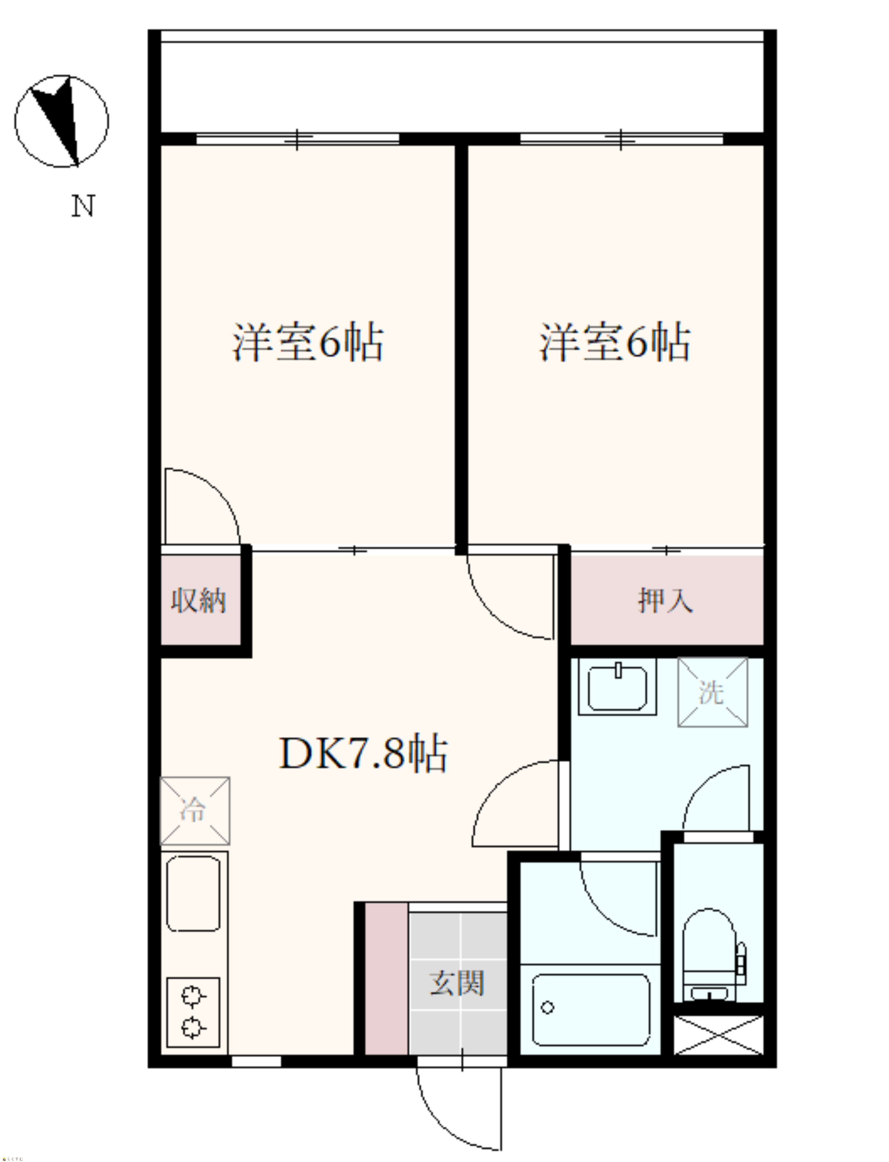 | 間取り | 2DK (洋室:6、6) DK7.8 |