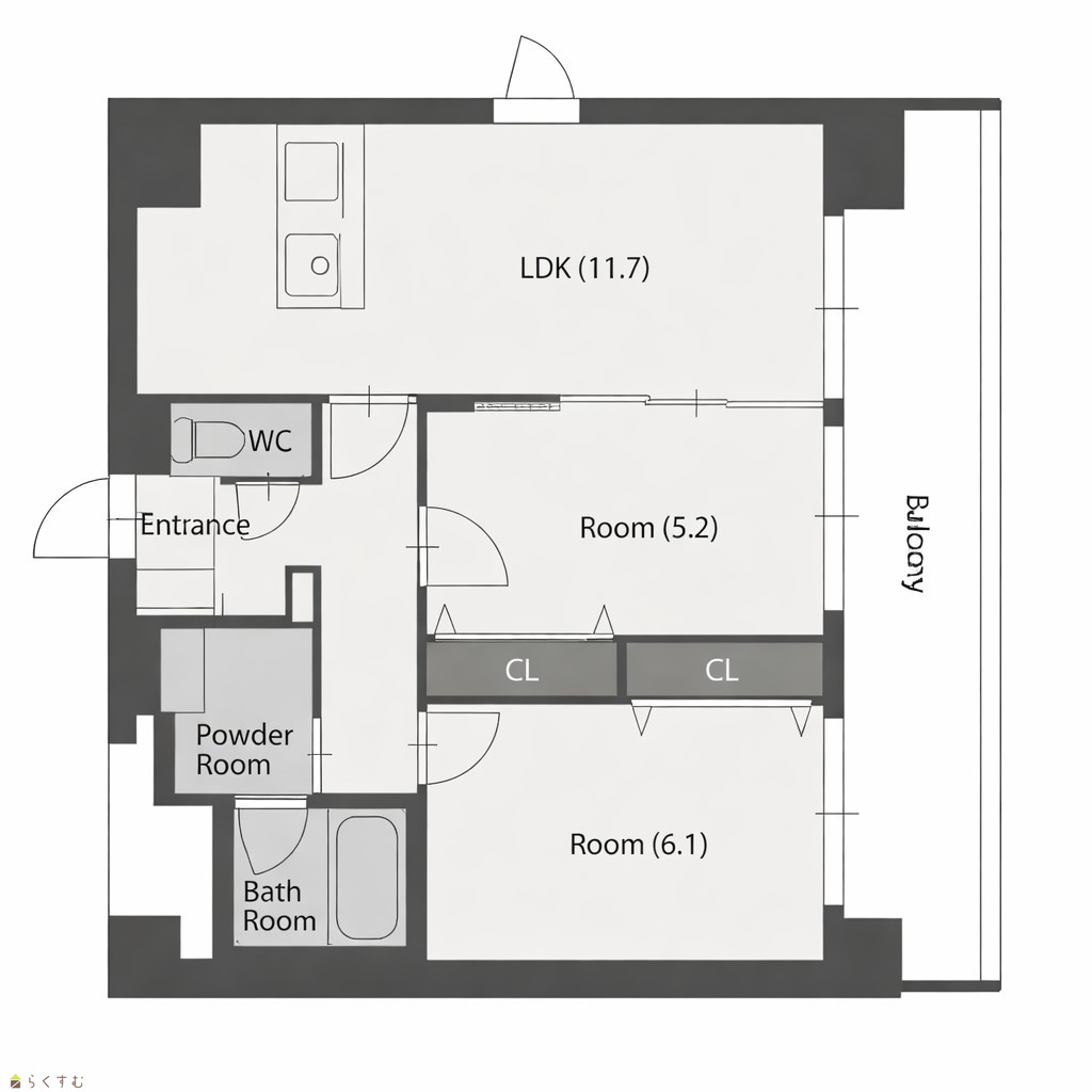 | 間取り | 2LDK (洋室:6.1、5.2) LDK11.7 |