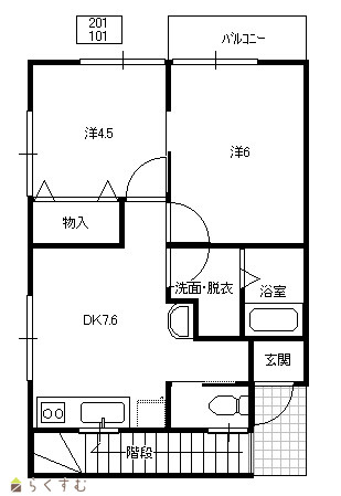 | 間取り | 2DK (洋室:4.5、6) DK7.6 |