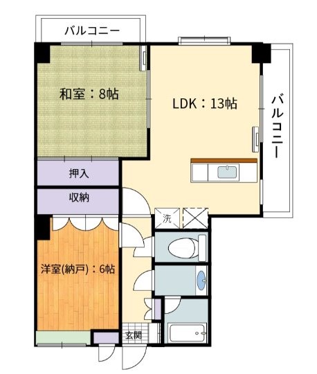 | 間取り | 2LDK (和室:8畳) (洋室:6) LDK13.0 |
