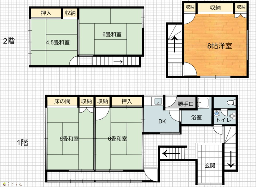 | 間取り | 5DK (和室:6畳、6畳、6畳、4.5畳) (洋室:8) | ||