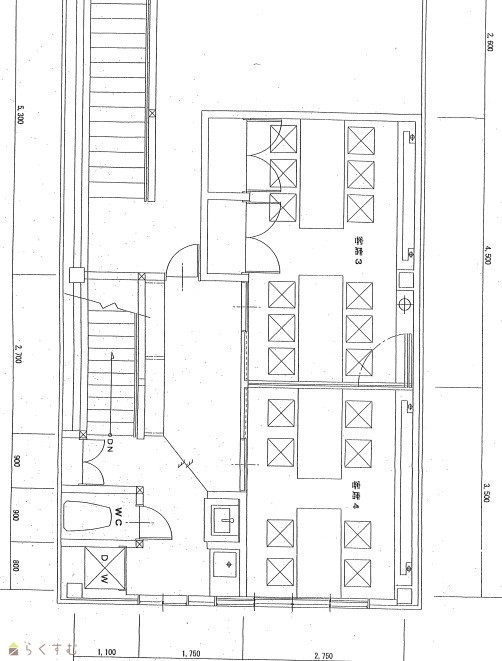 | 備考 | ・町内会費:(月額)1,200円を別途町内に納入(一括払い 可) ・駐車場:なし、近隣にて別途契約(¥6,000~) ・保証委託契約、テナント保険:要加入 ・ワンフロア22㎡(約13.3帖)、エアコン2台、照明、収納2ヶ所、洋式水洗便座、洗面化粧台 ・※電気メーターが共用の為、貸主負担で入居前に個別専用メーターの工事をします。 ・造作可能、その他 使用用途等に関して協議、応相談可能。 |