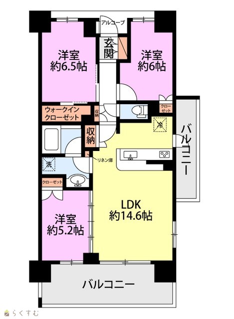 | 間取り | 3LDK (洋室:6.5、6、5.2) | ||