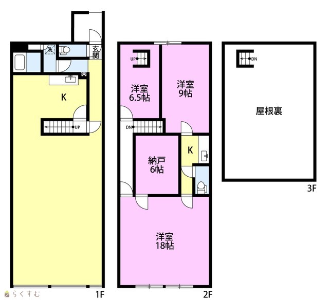 | 間取り | 3LDK (洋室:18、9、6.5) | ||