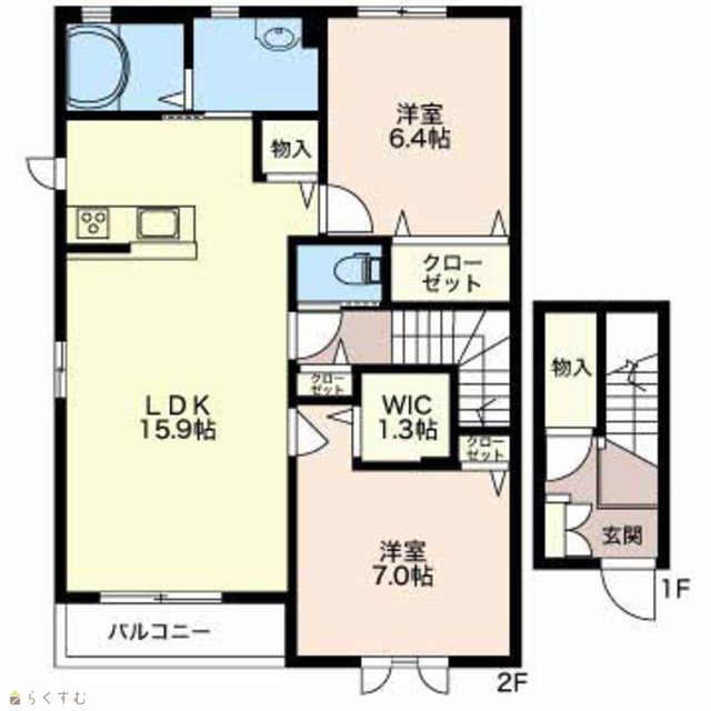 | 間取り | 2LDK (洋室:7、6.4) | ||