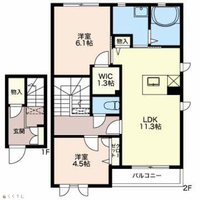 | 間取り | 2LDK (洋室:6.1、4.5) | ||