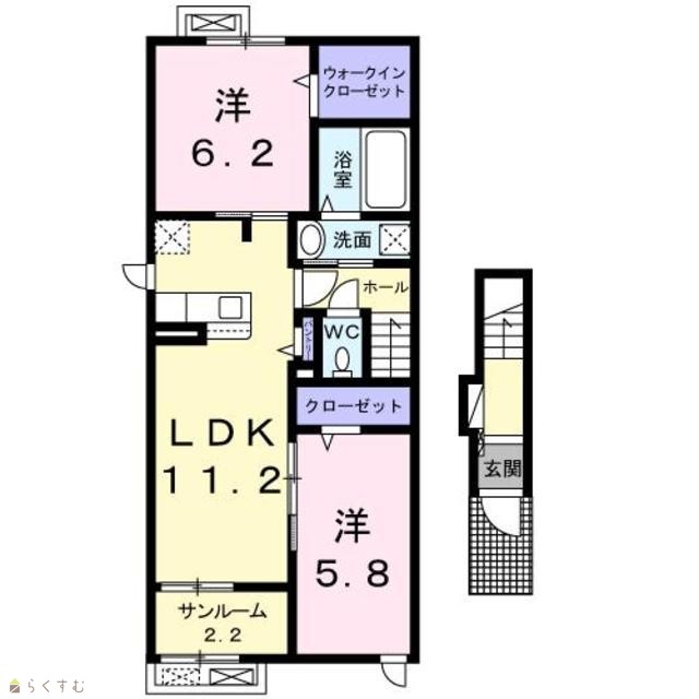 | 間取り | 2LDK (洋室:6.2、5.8) | ||