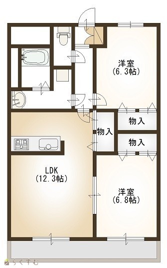 | 間取り | 2LDK (洋室:6.8、6.3) | ||