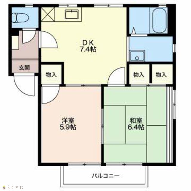 | 間取り | 2DK (和室:6.4畳) (洋室:5.9) | ||
