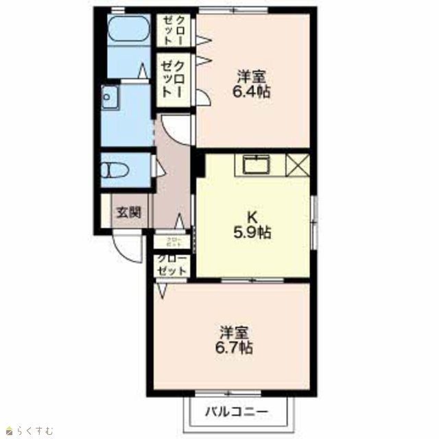 | 間取り | 2K (洋室:6.7、6.4) | ||
