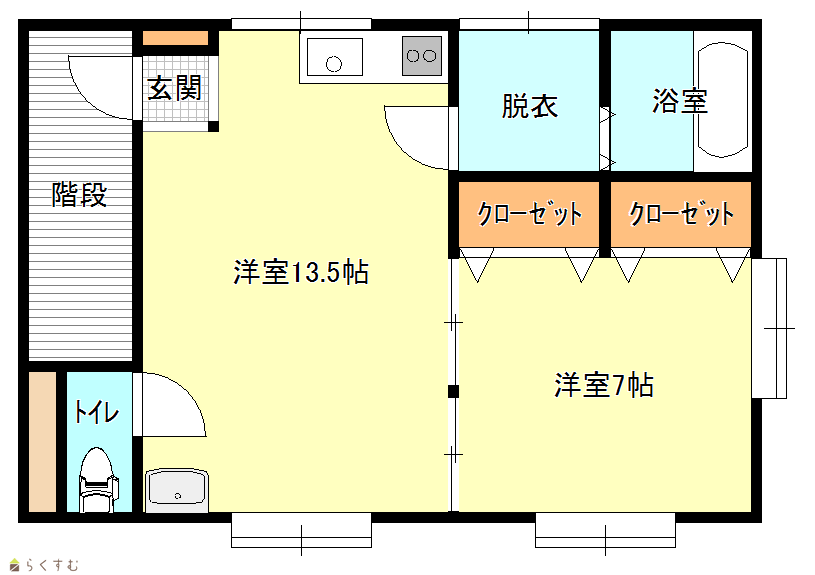 | 間取り | 1LDK (洋室:13.5、7) | ||