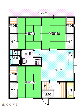 | 間取り | 3DK (和室:6畳、6畳、6畳) DK8 |