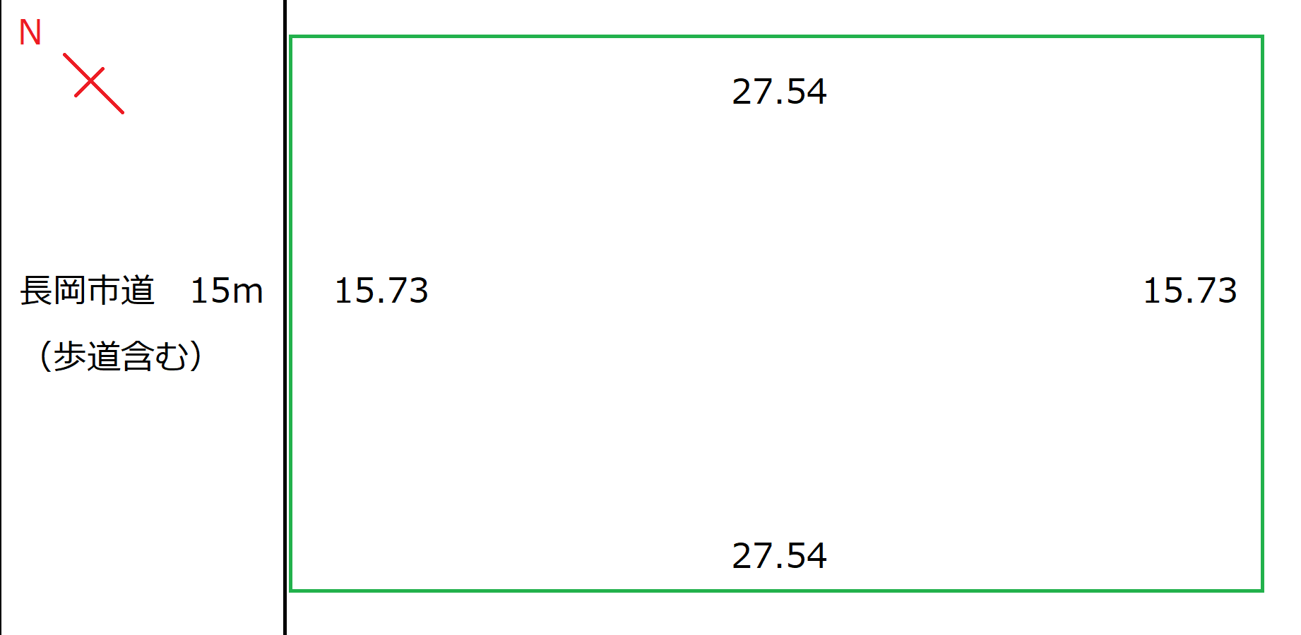 | 形状 | 間口 15.73m × 奥行 27.54m | 道路 | 長岡市道 西側15m 融雪無 |