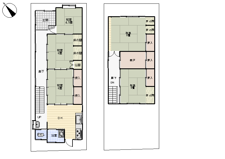 5DK (和室:4.5畳、6畳、6畳、8畳、8畳) DK6S3 駐車場なし、車の乗入れはできません。 |