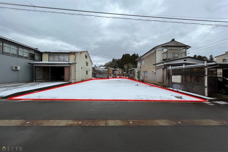 広々敷地79.99坪、閑静な住宅街。間口12.5m南側道路。前面道路消雪パイプ有り、冬場も安心。