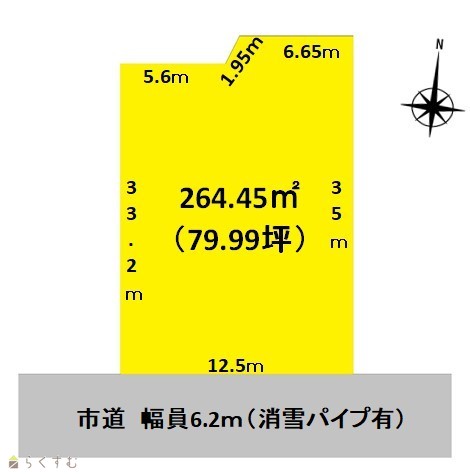 | 形状 | 間口 12.5m × 奥行 35m | 道路 | 南側接道 幅員6.2m 消雪パイプ有り |