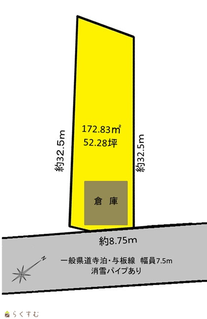 | 形状 | 間口 8.75m × 奥行 32.5m | 道路 | 県道寺泊・与板線 幅員7.5m |
