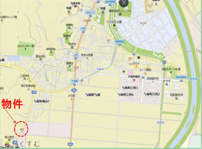 | 都市計画 | 市街化調整区域 | 学校区 | 与板小学校(1,900m)・与板中学校(1,900m) |
