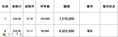 | 販売区画数 | 6区画 | ||