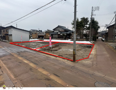 | 設備 | 前道6m以上、南側道路面す、更地、学校近く、最寄り駅近く、閑静な住宅街、建築条件なし、所有権、都市ガス(前面道路)、上水道(前面道路)、下水道(宅地内)、前面道路融雪設備あり、住宅向け | ||