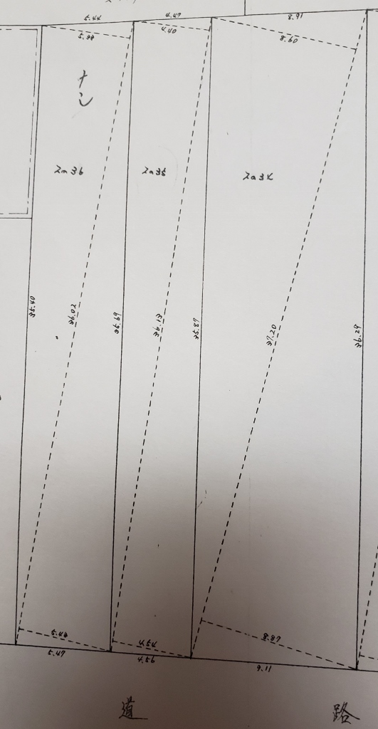 | 形状 | 間口 4.5m × 奥行 35.8m | 道路 | 7.8m西向長岡市道(消雪道路) |