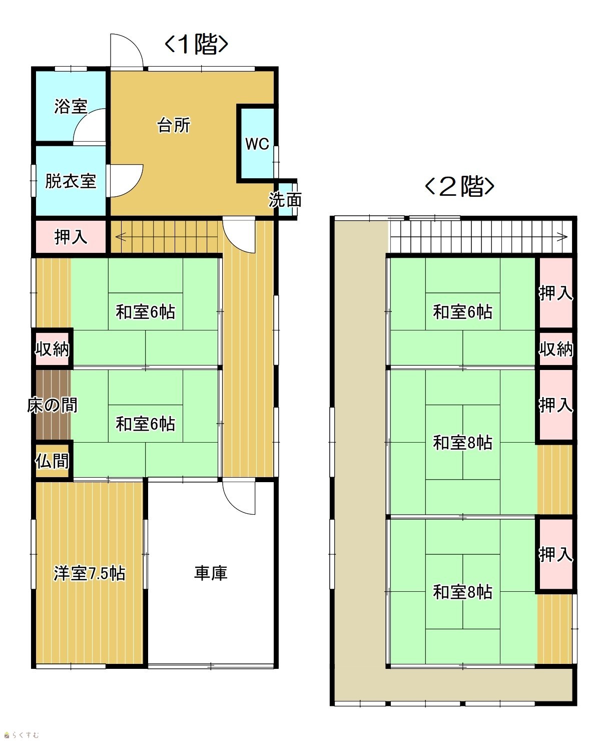 | 間取り | 6DK (和室:6畳、6畳、6畳、8畳、8畳) (洋室:7.5) | ||