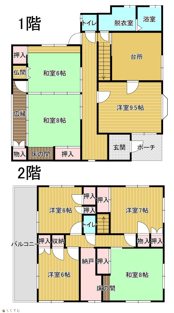 7DK (和室:6畳、6畳、8畳) (洋室:4.5、6、6、6) DK4.5帖 |