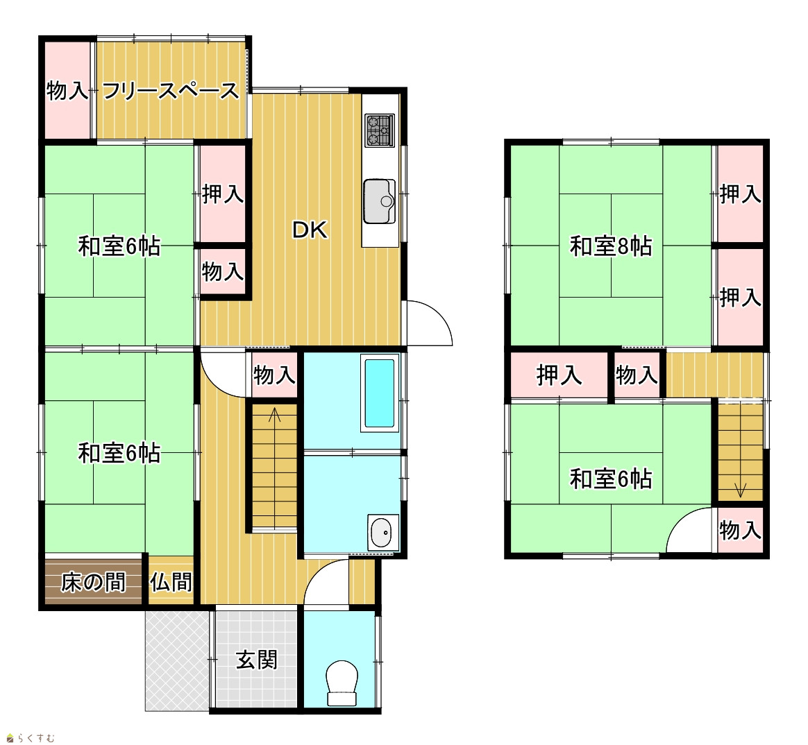 | 間取り | 4DK (和室:8畳、6畳、6畳、6畳) | ||